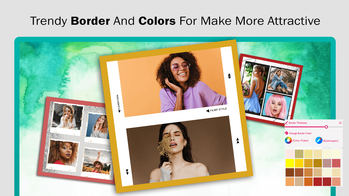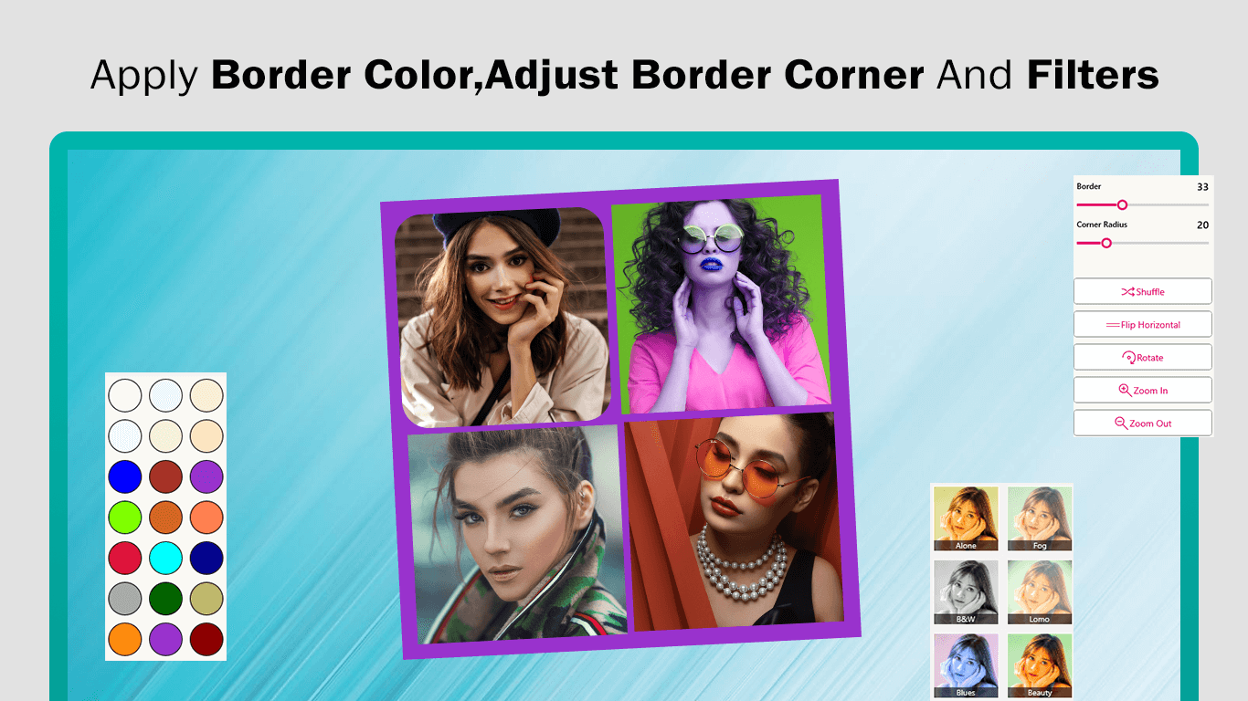 - The “Color” option enables you to choose your favorite color for the collage frame. Select the desired color to customize the appearance of your collage frame.