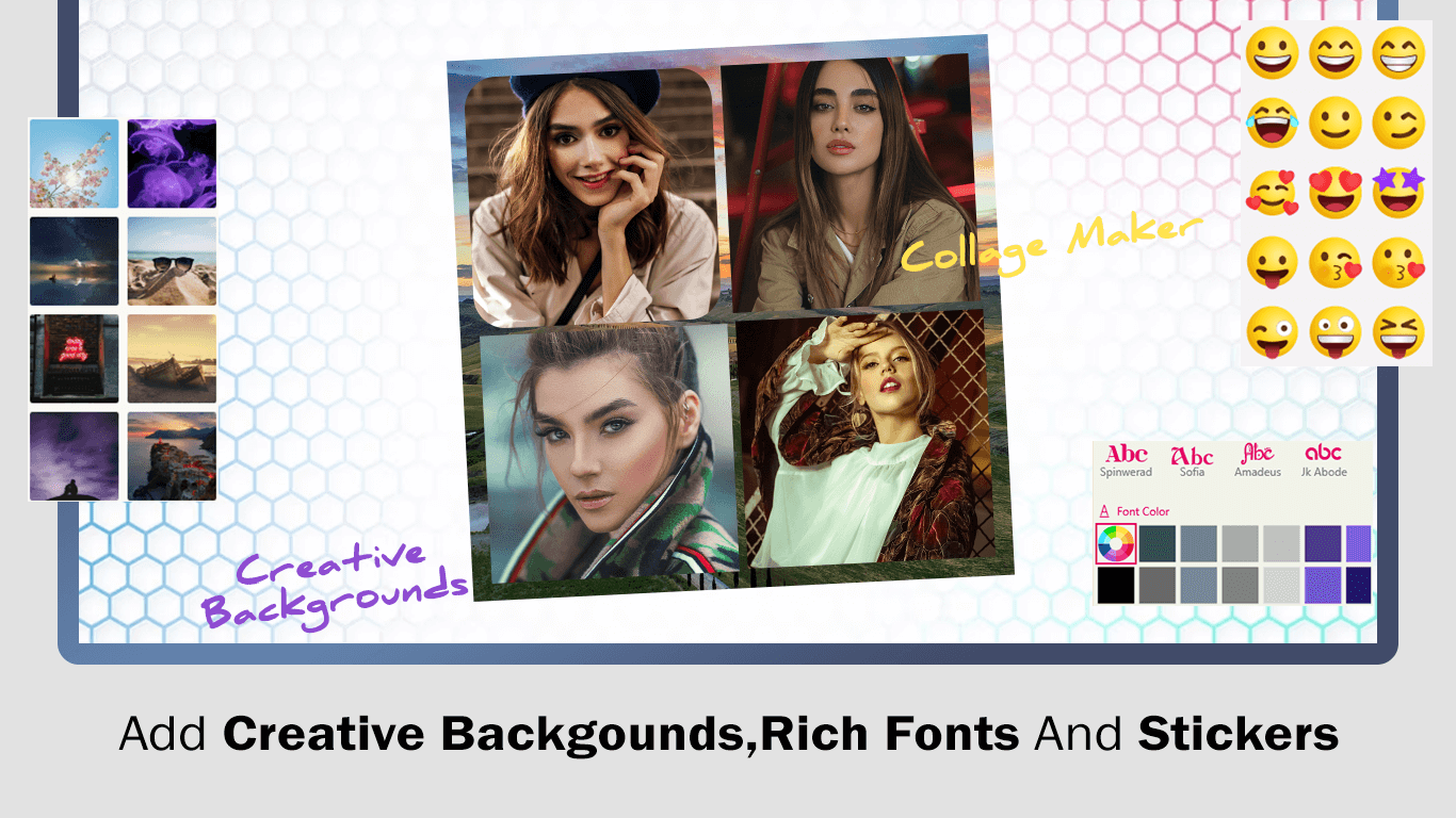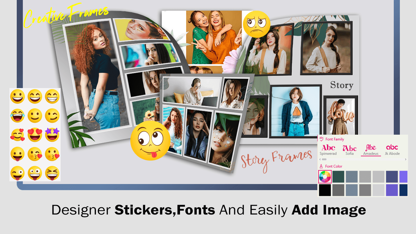 - Select from multiple layouts for your collage and enhance it with a full array of emotions and stickers available in the app. Experiment with new filters to add fantastic effects to your collage.