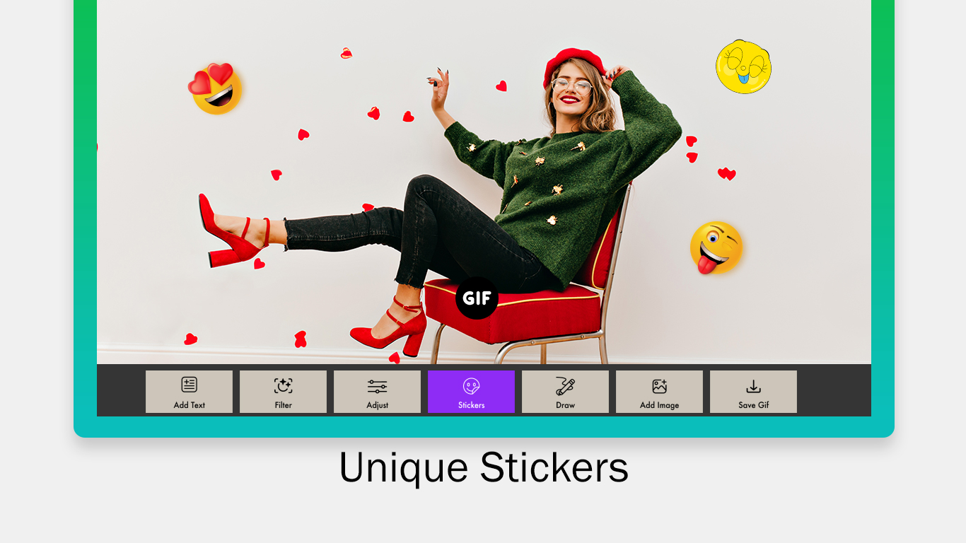 - Click on the “Sticker” option, and you can apply your favorite stickers to enhance your GIF.