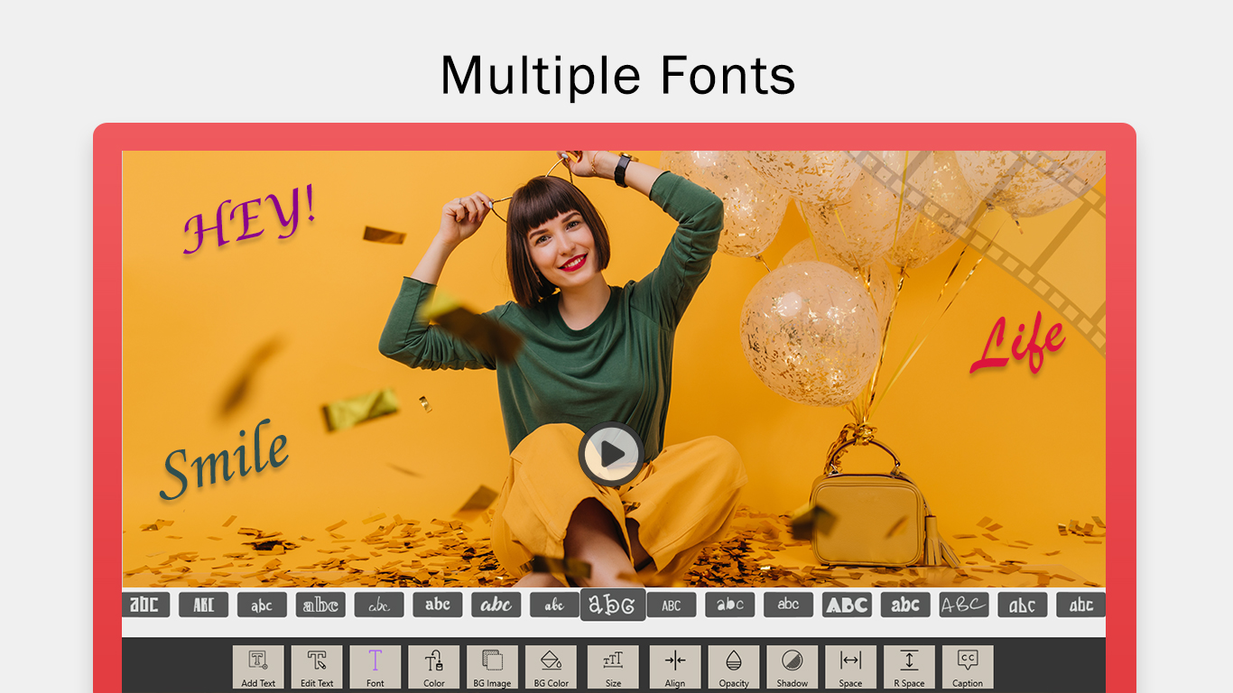 - Choose your favorite font style and customize the text by adjusting parameters such as text color, background color, shadow, and more.