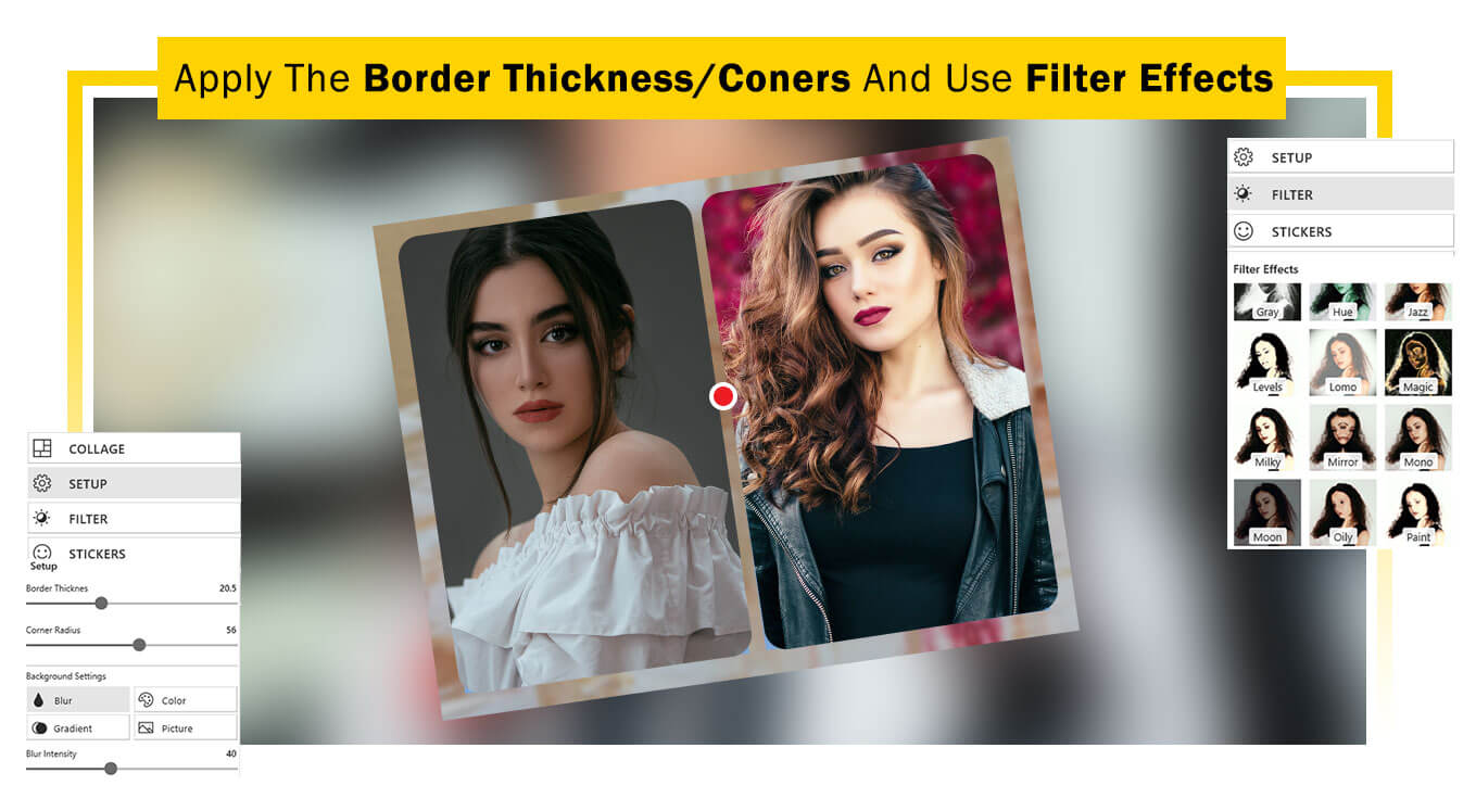 - Click on the “Step-up” option to set up border thickness, corner radius, and background settings for your collage.