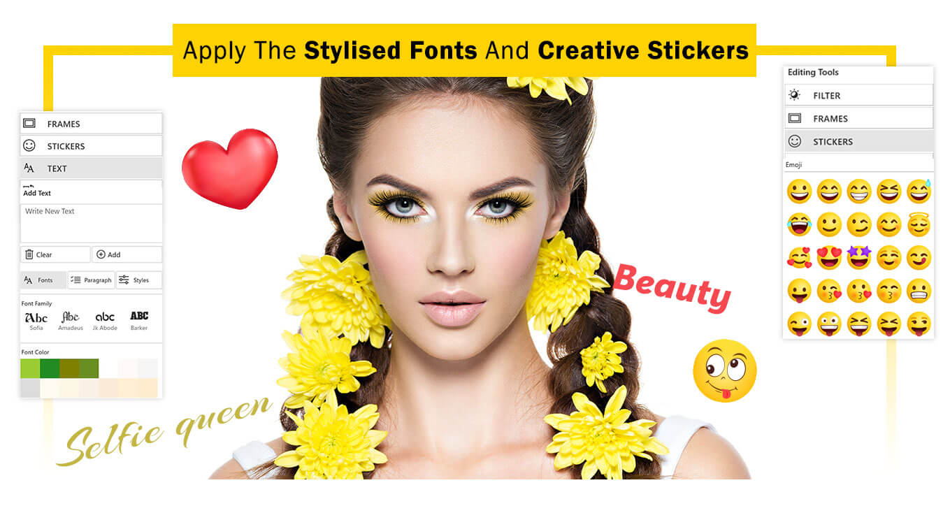 In “Selfie In Style Easy Photo Editor,” the Stickers and Text features allow you to add creative elements to your image. Here’s how you can use them: