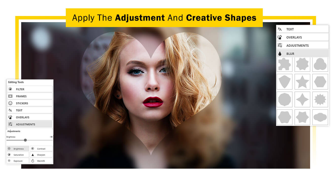 - Click on the “Blur” button to apply a blur effect to your image using different shapes.